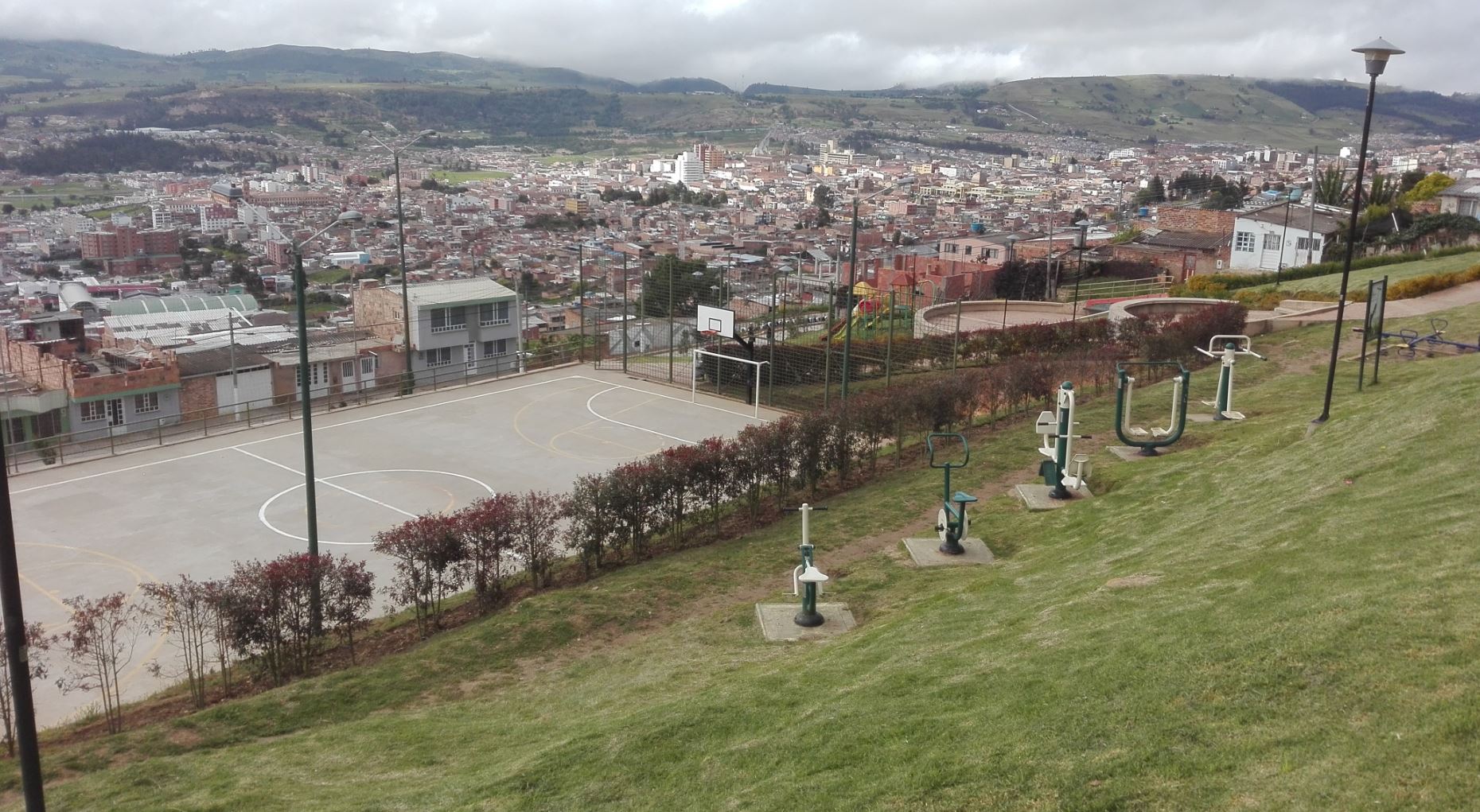 Como se puede observar en las fotografías, este parque posee unos escenarios deportivos y una excelente vista de toda la ciudad, lo que estimula a la comunidad a cuidar este bien público, que a pesar de cumplir casi 3 años de funcionamiento, se observa en muy buenas condiciones.